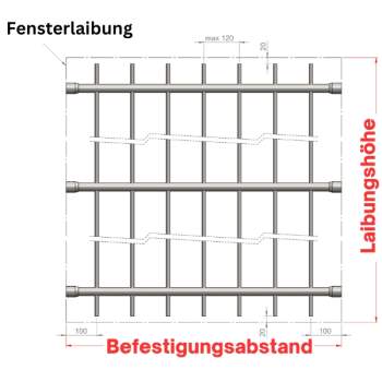 Einbruchschutz Fenstergitter, die Einbruchsicherung aus Edelstahl zur einfachen Montage in der Fenster-Laibung aus Edelstahl-Rundrohr ø 26,9 mm